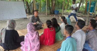 নালিতাবাড়ীর চেল্লাখালীতে পাহাড়ি ঢল, বেড়িবাঁধ সংস্কার না করায় গাছের গুড়ি ও বাঁশ ফেলে সড়ক অবরোধ