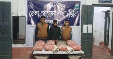 মশিউর রহমান : গত ২৪ ঘন্টায় খুলনা মহানগর পুলিশের মাদক বিরোধী অভিযানে মাদক কারবারি ১) মোহাম্মদ মনিরুজ্জামান(৪৫), পিতা-মোঃ হাতেম আলী গাজী, সাং-১০ মাস্টারপাড়া টুটপাড়া, থানা-খুলনা; ২) মোঃ সবুজ হোসেন(২২), পিতা-মোঃ ইউসুফ হোসেন, সাং-কৃষ্ণনগর খালপাড়, থানা-লবণচরা; ৩) মোঃ আল আমিন(২৪), পিতা-মোঃ আলিমুদ্দিন, সাং-বিষ্ণুপুর, থানা-নান্দাইল, জেলা-ময়মনসিংহ; ৪) মোঃ একরাম হোসেন@বাপ্পি(২১), পিতা-মোঃ ওসমান হোসেন, সাং-হাউজিং এস্টেট, থানা-খালিশপুর; ৫) মোঃ সেকু(২০), পিতা-মোঃ নেছার, সাং-বঙ্গবাসী, থানা-খালিশপুর এবং ৬) আশিক হাওলাদার (২০), পিতা-মৃত: খোকন হাওলাদার, সাং-মানিকতলা মেইন রোড, থানা-দৌলতপুর, খুলনা মহানগরীদের’কে মহানগরীর বিভিন্ন থানা এলাকা হতে গ্রেফতার করা হয়েছে। উপরোক্ত মাদক কারবারিদের নিকট হতে ২০০ পিস ইয়াবা ট্যাবলেট এবং ৫০০ গ্রাম গাঁজা আলামত হিসেবে উদ্ধার করা হয়েছে। এ সংক্রান্তে গ্রেফতারকৃত মাদক কারবারিদের বিরুদ্ধে সংশ্লিষ্ট থানায় ০৫ টি মাদক মামলা রুজু করা হয়েছে।