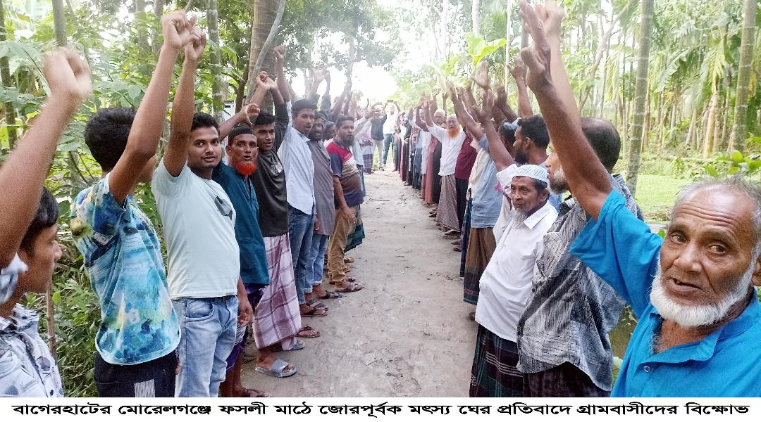 মোরেলগঞ্জে ৩শ’ বিঘা ফসলি জমিতে জোরপূর্বক মৎস্য ঘের, প্রতিবাদে কৃষকদের মানববন্ধন
