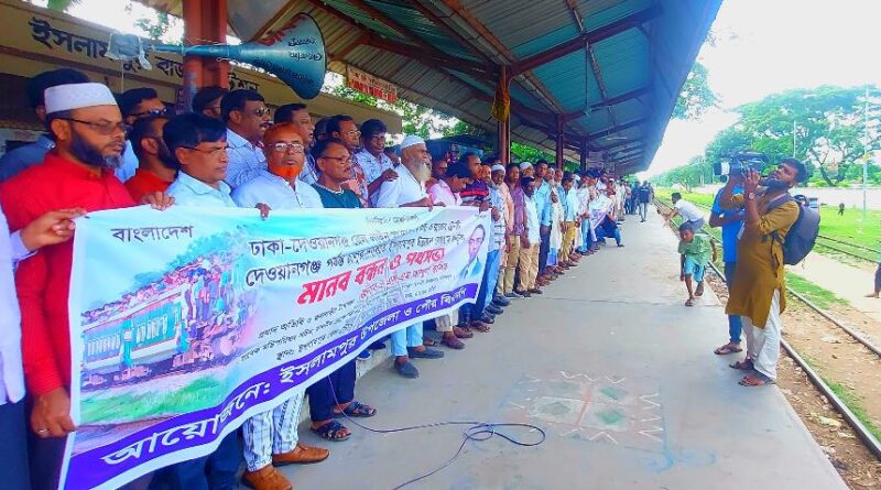 Read moreলিয়াকত হোসাইন লায়ন,জামালপুর প্রতিনিধি ।। ঢাকা থেকে দেওয়ানগঞ্জ রেল লাইন সংস্কার ও বিজয় এক্সপ্রেস ট্রেনটি দেওয়ানগঞ্জ পর্যন্ত চালুর দাবিতে ইসলামপুরে