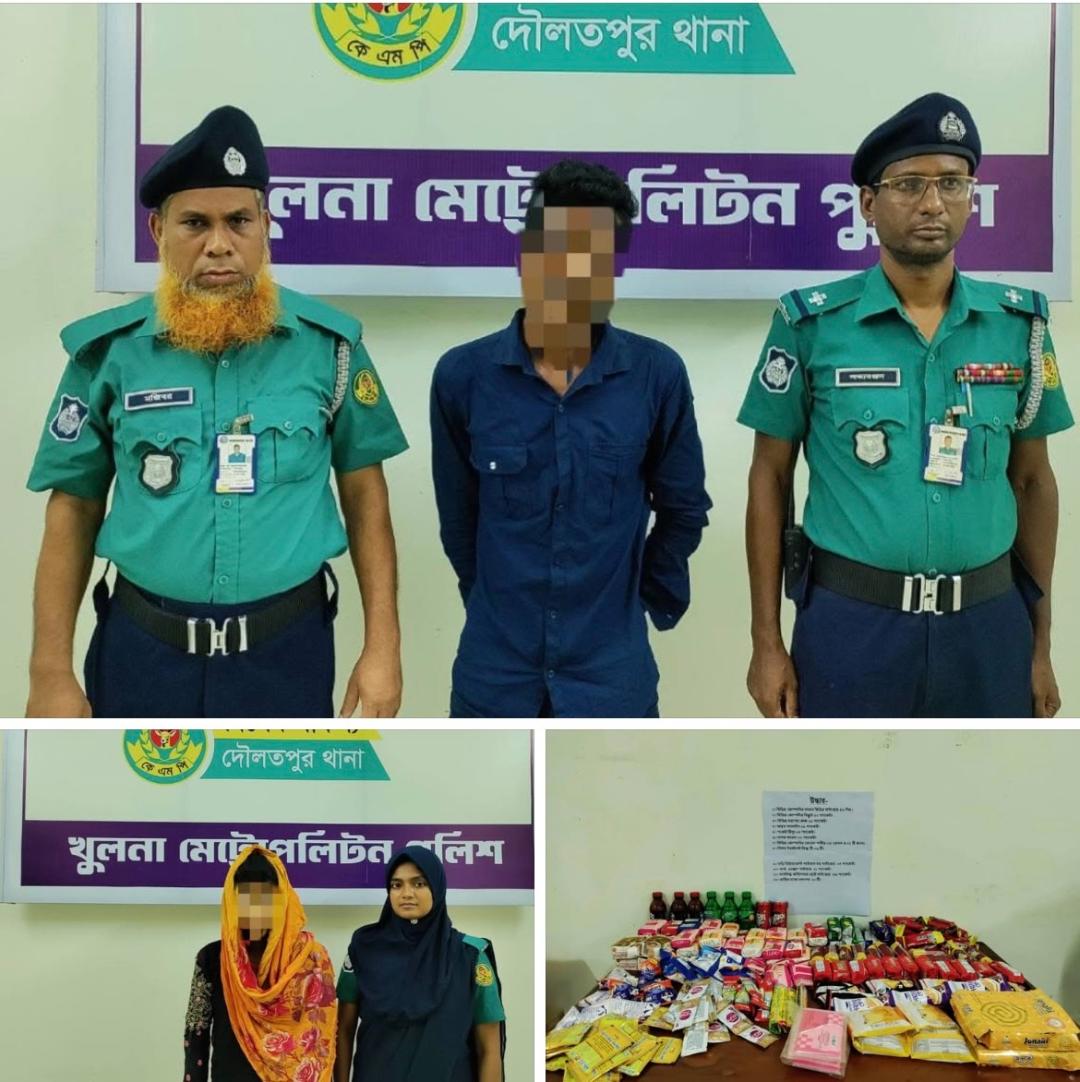 ঘটনার তদন্তে নেমে পুলিশ চোরদেরকে সনাক্ত করে এবং গোপন সংবাদের ভিত্তিতে ৯ জুলাই ২০২৫ তারিখ রাতে দৌলতপুর থানাধীন আবু সুফিয়ান কলোনী এলাকায় অভিযান চালায়। অভিযানে চোর ১) সালাউদ্দিন মিনা (২৫), পিতা-সাহেব আলী মিনা, সাং-পশ্চিম সেনপাড়া, থানা-দৌলতপুর এবং ২) সাথী (২২), স্বামী-আব্দুর রহমান, সাং-পশ্চিম সেনপাড়া, থানা-দৌলতপুর, খুলনাদ্বয়কে গ্রেফতার করা হয়। তাদের হেফাজত হতে দোকানের চুরি হওয়া ৫২ পিস সাবান, ৪ প্যাকেট ডিটারজেন্ট পাউডার, ১২ প্যাকেট Surf excel, ৩৬ টি মিনি প্যাক Conditioner, ১০ টি রাজিব চকো চকো বলপেন, ৫১ প্যাকেট বিস্কুট, ১২ প্যাকেট ড্রাই কেক, ৭ প্যাকেট কেক, ১৯ প্যাকেট টেস্টি স্যালাইন, ৪ প্যাকেট টিস্যু, ২ প্যাকেট মশার কয়েল, ৩ বোতল স্পিড, ৩ বোতল ফিজ আপ, ২ বোতল ম্যাক্স কোলা এবং ৯ টি সিলন ইনস্ট্যান্ট মিল্ক উদ্ধার করা হয়েছে। গ্রেফতারকৃত আসামীদ্বয়কে বিজ্ঞ আদালতে সোপর্দ করা হয়েছে।