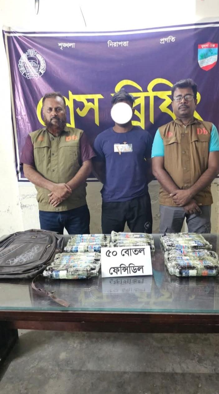 জেলা গোয়েন্দা শাখা (ডিবি) যশোর ৫০(পঞ্চাশ) বোতল অবৈধ মাদকদ্রব্য ফেন্সিডিল সহ মাদক ব্যবসায়ী গ্রেফতার।
