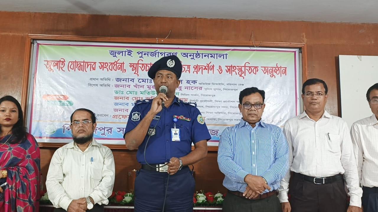 পিরোজপুরে নানা আয়োজনের মধ্য দিয়ে অনুষ্ঠিত হলো “জুলাই পুনর্জাগরণ” অনুষ্ঠানমালা। বৃহস্পতিবার (৩১ জুলাই) পিরোজপুর সরকারি মহিলা কলেজের উদ্যোগে এই আয়োজনে জুলাই যোদ্ধাদের সংবর্ধনা, স্মৃতিচারণ, প্রামাণ্যচিত্র প্রদর্শন ও সাংস্কৃতিক অনুষ্ঠানের আয়োজন করা হয়।