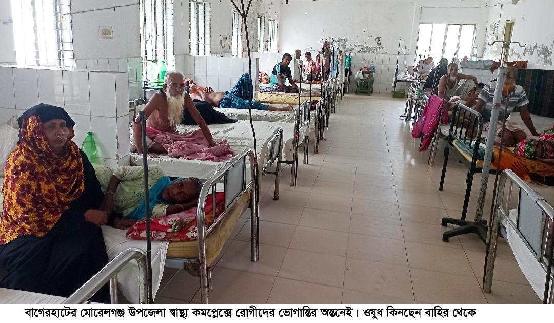 মোরেলগঞ্জ উপজেলা স্বাস্থ্য কমপ্লেক্সে সেবার নামে ভোগান্তি ঔষধ নেই, টেস্ট নেই, ডাক্তার নেই!৩৫ প্রকারের তালিকায় পাচ্ছেন ৪ প্রকার ঔষুধ