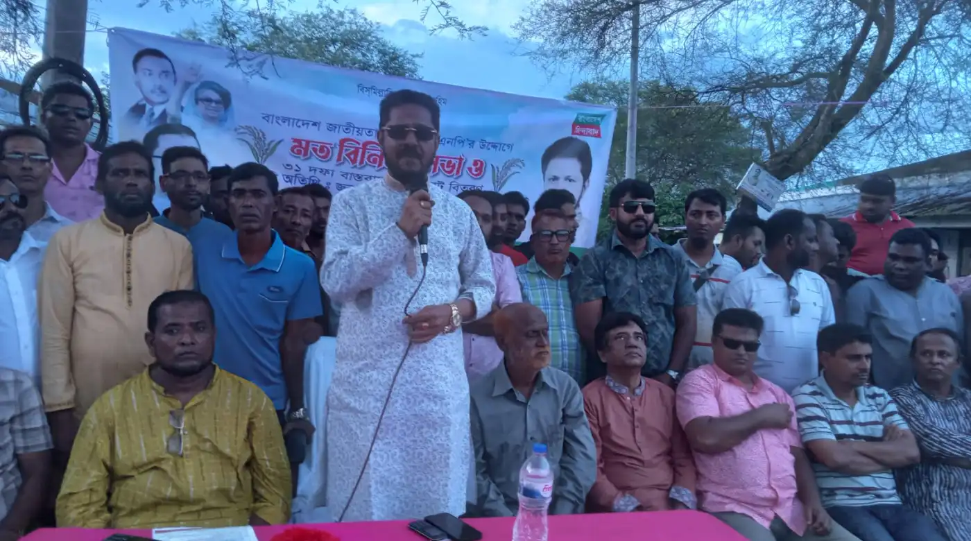 সেখ রাসেল, ব্যুরো চিফ, খুলনা: বিএনপির ভারপ্রাপ্ত চেয়ারম্যান তারেক রহমান ঘোষিত রাষ্ট্র কাঠামো মেরামতের ৩১ দফা বাস্তবায়নের লক্ষে ১৪/০৮/২৫ মঙ্গলবার বিকাল ৪ টায় খুলনা বটিয়াঘটা সুরখালী ইউনিয়নের শুখদাড়ায় ইউনিয়ন বিএনপির আয়োজনে মতবিনিময় সভা ও লিফলেট বিতরণ অনুষ্ঠান অনুষ্ঠিত।অনুষ্ঠানে প্রধান অতিথি হিসেবে উপস্থিত ছিলেন, খুলনা জেলা বিএনপির সাবেক আহবায়ক খুলনা ১ আসনের সংসদ সদস্য প্রার্থী আলহাজ্ব আমির এজাজ খা।অনুষ্ঠানের সভাপতিত্ব করেন ৭ নং ওয়ার্ডের সভাপতি ইসমাইল শেখ। এসময়ে আরো উপস্থিত ছিলেন,বটিয়াঘাটা উপজেলা বিএনপির সাবেক সাধারণ সম্পাদক ও বীর মুক্তিযোদ্ধা জিয়াউর রহমান জিকু,জলমা ইউনিয়ানের সাবেক চেয়ারম্যান আশিকুজ্জামান আশিক,কামরুজ্জামান শিপার,ওয়াদুজ্জামান ওয়াহেদ,বটিয়াঘাটা উপজেলা যুবদলের সদস্য সচিব বাহাদুর মুন্সি,জেলা যুবদলের সদস্য বাবু ও রাসেল,জলমা ইউনিয়ান বিএনপির সাবেক সাংগঠনিক সম্পাদক আঃ জব্বার,উপজেলা ছাত্র দলের সাবেক সিনিয়র যুগ্ন আহবায়ক ইসমাইল হোসেন খান,আমীর হোসেন সবুজ,উপজেলা যুবদলের সদস্য বেল্লাল হোসেন,মুসা ইসলাম,কারীমুল,বাদল হাওলাদার,হাফিজুর রহমান হাফিজ,কবির আকন,সামসুল হক,ছাত্র নেতা বায়েজিদ,মন্জুরুল,আলমগীর মল্লিক,মনিরুল,সাহেদুজ্জামান গোলদার,মোঃজাহাঙ্গীর আলম,নাজমুল শেখ,মাসুম বিল্লা,সোহেল হাসান রানা,নুরুল ইসলাম মামুন,রহিম মল্লিক,শফিকুল ইসলাম,বাবুল খা,মামুন হাসান সহ সকল অঙ্গ সংগঠনের নেতা কর্মী।