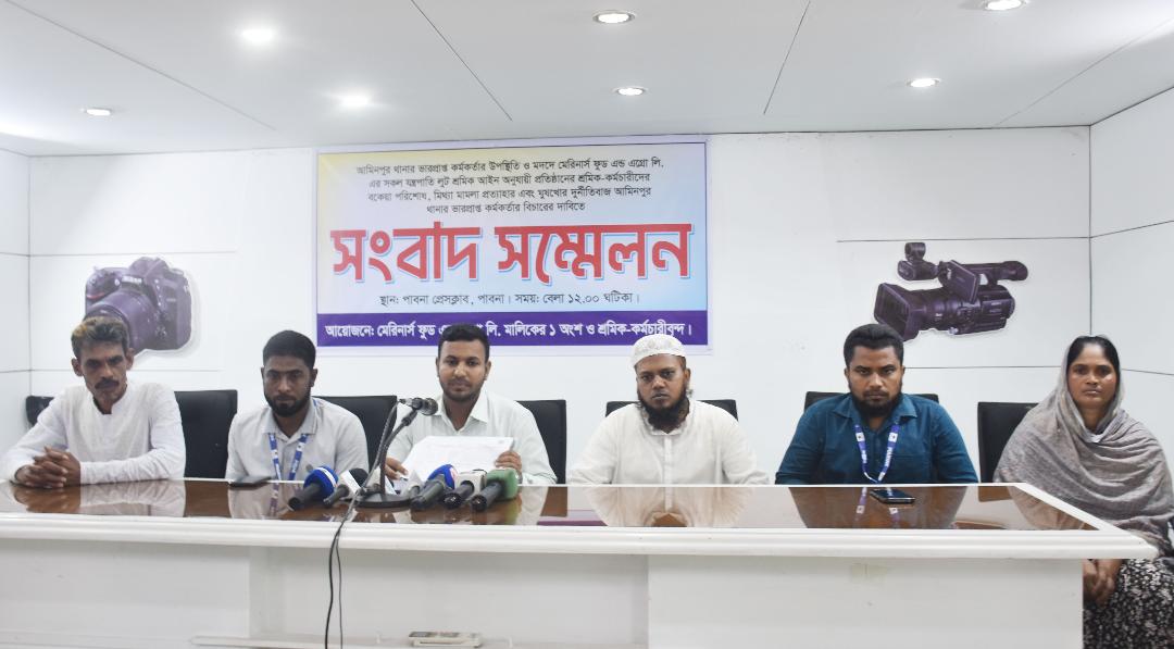 পাবনা প্রতিনিধি: আওয়ামী ফ্যাসিস্ট এর দোসর শামীম আহম্মেদের কাছ থেকে আর্থিক সহযোগীতা নিয়ে আমিনপুর থানার ভারপ্রাপ্ত কর্মকর্তা মো. গোলাম মোস্তফার উপস্থিতি ও মদদে মেরিনার্স ফুড এন্ড এগ্রো লি. এর সকল যন্ত্রপাতি লুট; শ্রমিক আইন অনুযায়ী প্রতিষ্ঠানের শ্রমিক-কর্মচারীদের বকেয়া পরিশোধ, মিথ্যা মামলা প্রত্যাহার এবং ঘুষখোর দুর্নীতিবাজ আমিনপুর থানার ভারপ্রাপ্ত কর্মকর্তার বিচারের দাবিতে সংবাদ সম্মেলন করেছে ভুক্তভোগী মেরিনার্স ফুড এন্ড এগ্রো লিমিটেডের মালিক ও শ্রমিকবৃন্দ। শনিবার বেলা ১২টায় পাবনা প্রেসক্লাবে এ সাংবাদিক সম্মেলন অনুষ্ঠিত হয়।