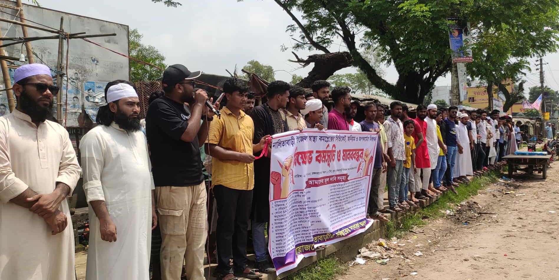 মঙ্গলবার (২৬ আগস্ট) সকালে নালিতাবাড়ী উপজেলার সর্বস্তরের সাধারণ জনগণ উপজেলা স্বাস্থ্য কমপ্লেক্সের সামনে ওই বিক্ষোভ কর্মসূচি ও মানববন্ধনের আয়োজন করে।