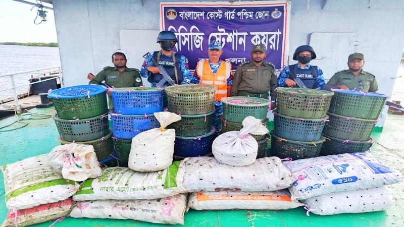 সুন্দরবনে কোস্ট গার্ডের অভিযান ৮৫০ কেজি অবৈধ কাঁকড়া জব্দ