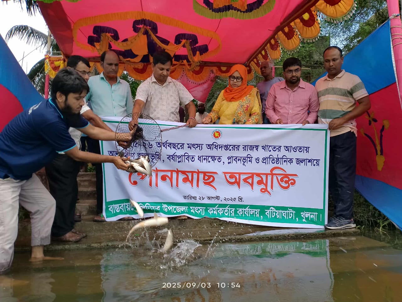 সেখ রাসেল, ব্যুরো চিফ, খুলনা: খুলনা বটিয়াঘাটায় ০৩/০৯/২৯২৫ তারিখ রোজ বুধবার সকাল সাড়ে ১০ টায় মৎস্য দপ্তরের উদ্যোগে বটিয়াঘাটা উপজেলায় বিভিন্ন সরকারি ও বটিয়াঘাটা উপজেলায় বিভিন্ন প্রতিষ্ঠানে মাছের পোনা বিতরণ।
