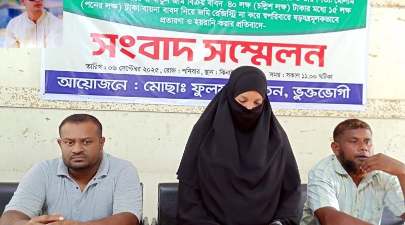 Read moreসাইফুল ইসলাম ঝিনাইদহ সংবাদদাতা-জমি বিক্রির নামে ১৫ লাখ টাকা আত্মসাৎ করেছে ঝিনাইদহের চিহ্নিত এক প্রতারক পরিবার। তাদের খপ্পরে পড়ে সর্বশান্ত