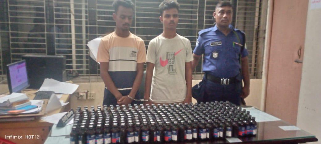 র‌্যাব-১৩ এর ‎আভিযানিক দল গোপন সংবাদের ভিত্তিতে বিকাল ০৪.১৫ ঘটিকায় দিনাজপুর জেলার পার্বতীপুর মোজাফফর নগর মোঃ জাকির হোসেন এর বসত বাড়িতে অভিযান পরিচালনা করে ধৃত আসামী ১। মোঃ মানিক শেখ (২৩) ও ২।মোঃ জাহিদ সৈনিক (১৯)’দ্বয়ের শয়ন কক্ষের খাটের নিচে ০২ টি প্লাস্টিকের বস্তার ভেতরে রক্ষিত ২৬৭ বোতল ফেন্সিডিল জব্দসহ আসামি ১। মোঃ মানিক শেখ (২৩), ২।মোঃ জাহিদ সৈনিক (১৯), উভয় পিতা- মোঃ জাকির হোসেন, উভয় সাং- মুজাফফরনগর, থানা- পার্বতীপুর, জেলা- দিনাজপুর গ্রেফতার করতে সক্ষম হয়।পরবর্তী কার্যক্রমের জন্য গ্রেফতারকৃত আসামিদ্বয়কে সংশ্লিষ্ট থানায় হস্তান্তর করা হয়েছে। পাবতীপুর মডেল থানার ইনচার্জ আব্দুল্লাহ আল মামুন জানান, মাদকদ্রব্য নিয়ন্ত্রণ আইনে মামলা দিয়ে জেলে হাজতে প্রেরণ করা হয়েছে।