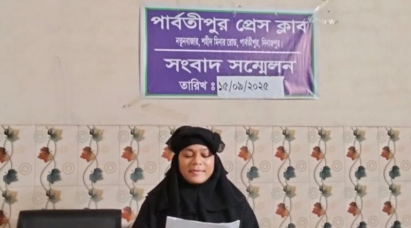 Read moreরুকুনুজ্জামান, পার্বতীপুর প্রতিনিধি: দিনাজপুরের পার্বতীপুরে উপজেলার ঝাউপাড়া সরকারী প্রথমিক বিদ্যালয়ের সহকারী শিক্ষিকা আফরোজা খাতুন নিজের জীবনের নিরাপত্তা চেয়ে সংবাদ সম্মেলন