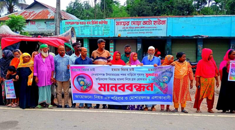 Read moreলিয়াকত হোসাইন লায়ন, জামালপুর প্রতিনিধি \ জামালপুরের দেওয়ানগঞ্জে শশুর বাড়িতে গৃহবধূ সুমাইয়া হত্যা ঘটনায় জড়িতদের দ্রæত গ্রেফতার ও বিচার দাবিতে