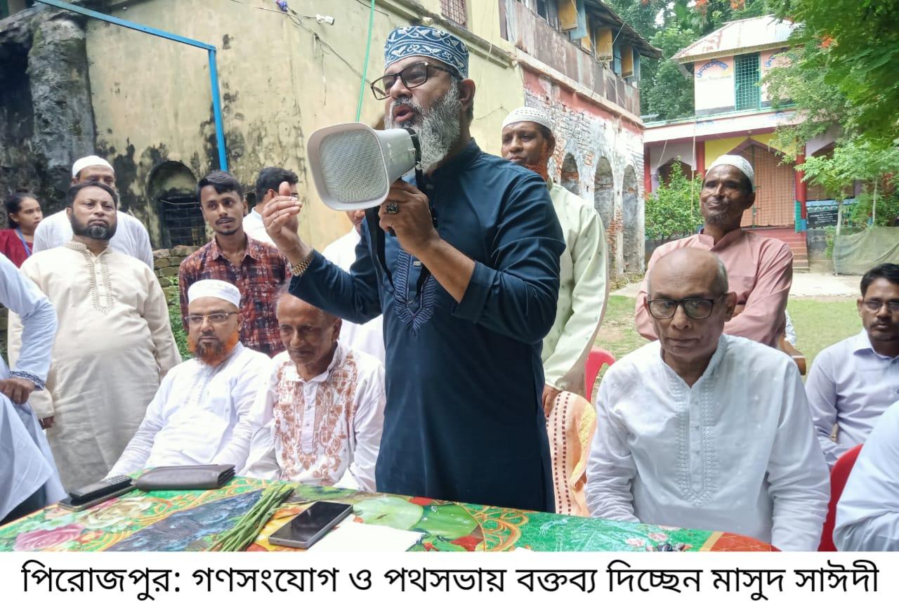 শুক্রবার (১৯ সেপ্টেম্বর) দিনব্যাপী পিরোজপুর শহরের বিভিন্ন এলাকায় গণসংযোগ ও পথসভায় প্রধান অতিথির বক্তব্যে তিনি এ কথা বলেন। এসময় তিনি পিটিআই, সাহাপাড়া, মধ্যকুমারখালী, রায়েরকাঠীর রাজবাড়ীসহ বিভিন্ন স্থানে গণসংযোগ করেন। এছাড়াও তিনি ঝাটকাঠীর শিকদারবাড়ী ও সিও অফিসে অটো শ্রমিকদের সঙ্গে মতবিনিময় করেন। মাসুদ সাঈদী আরও বলেন, “৫ আগস্টের পর জামায়াত-শিবিরের ভাইয়েরা প্রতিটি মন্দিরে গিয়ে রাত জেগে পাহারা দিয়েছে। কারণ আমরা সাম্প্রদায়িক সম্প্রীতির রাজনীতি করি, বিভেদ সৃষ্টি করি না। সামনে আরও একটি সময় আসছে। এবারও যদি একই ভুল করি তাহলে দেশের ক্ষতির জন্য আমরা সবাই দায়ী হবো।”
