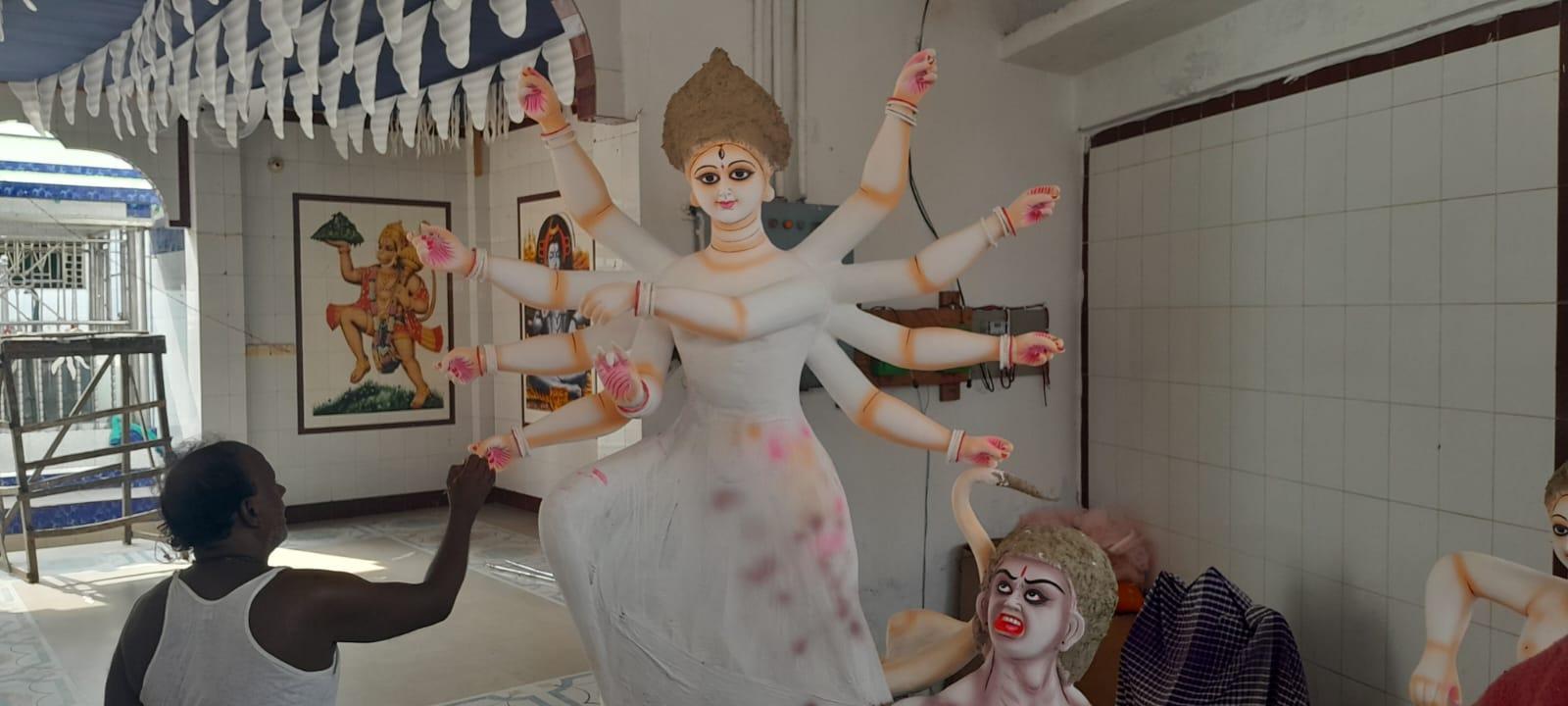 মন্দিরে মন্দিরে চলছে প্রতিমার রং আঁচড়ের কাজ মতলব দক্ষিণে ৩৪ মন্ডপে অনুষ্ঠিত হবে শারদীয় দুর্গাপূজা