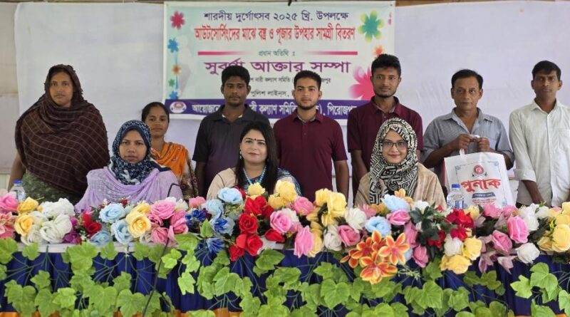 Read moreমোঃ মনিরুল ইসলাম চৌধুরী,স্টাফ রিপোর্টার: পিরোজপুরে পুলিশ নারী কল্যাণ সমিতি (পুনাক)-এর উদ্যোগে শারদীয় দুর্গাপূজা উপলক্ষে উপহার সামগ্রী বিতরণ করা হয়েছে।