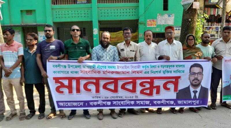 Read moreলিয়াকত হোসাইন লায়ন,জামালপুর প্রতিনিধি।। জামালপুরের বকশীগঞ্জে আওয়ামী লীগ নেতা ইসমাইল সিরাজীর দায়েরকৃত মামলায় কারাগারে থাকা সাংবাদিক মনিরুজ্জামান লিমনের মুক্তির দাবিতে