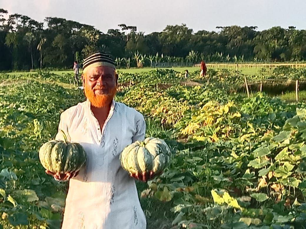 মোরেলগঞ্জে লবণাক্ত জমিতেমিষ্টি কুমড়া চাষ করে কোটিপতি জলিল তালুকদার
