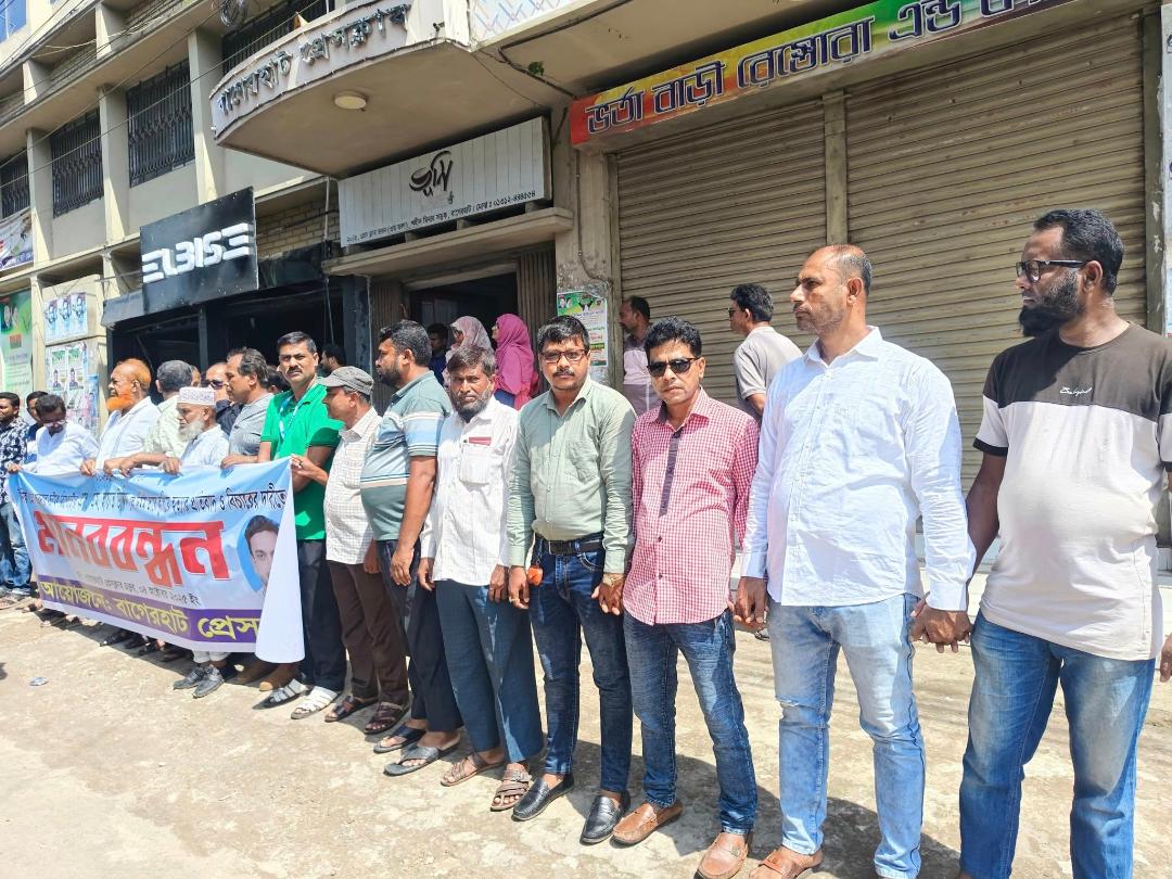 বাগেরহাটে সাংবাদিক হত্যার বিচার ও শাস্তির দাবিতে বাগেরহাট প্রেসক্লাবের মানববন্ধন
