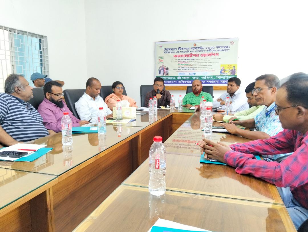 কনসালটেশন ওয়ার্কশপে ঝিনাইদহ প্রেসক্লাবের সভাপতি আসিফ ইকবাল কাজল, সাধারণ সম্পাদক আমিনুল ইসলাম লিটন, জেলা রিপোর্টার্স ইউনিটির সভাপতি এম,এ কবির, সাধারণ সম্পাদক মাজেদ রেজা বাধন, জেলা প্রেসক্লাবের সাধারণ সম্পাদক নাসিম আনসারীসহ বিভিন্ন গণমাধ্যমের সাংবাদিকবৃন্দ উপস্থিত ছিলেন। ওয়ার্কশপে টাইফয়েড টিকাদান ক্যাম্পেইন সম্পর্কে জনসচেতনতা বৃদ্ধি কল্পে বিভিন্ন ধরনের গুরুত্বপূর্ণ আলোচনা করা হয়।##