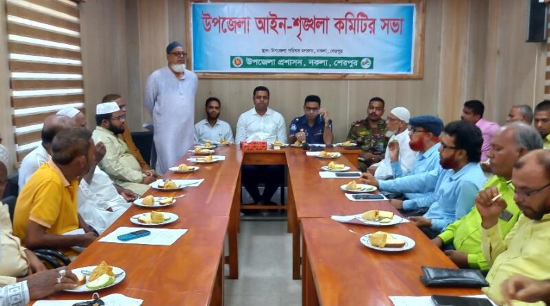 Read moreজাহাঙ্গীর হোসেন, শেরপুর প্রতিনিধি : শেরপুরের নকলায় উপজেলা আইন-শৃঙ্খলা কমিটির সভা অনুষ্ঠিত হয়েছে। বুধবার (১৫ আক্টোবর) বিকেলে উপজেলা পরিষদ হলরুমে