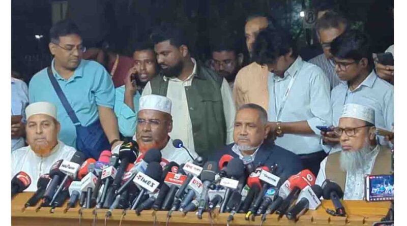প্রধান উপদেষ্টার সাথে বৈঠক শেষে জামায়াতের ড. তাহের প্রেস ব্রিফিংয়ে বলেন, নভেম্বরে গণভোট না হলে ফেব্রুয়ারির নির্বাচন গ্রহণযোগ্য হবে না, প্রধান উপদেষ্টার বিশেষ আদেশে জুলাই সনদ বাস্তবায়ন চায়