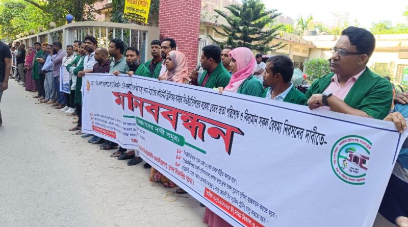 Read moreসাইফুল ইসলাম ঝিনাইদহ সংবাদদাতা – বকেয়া বেতন পরিশোধ, ১২তম গ্রেডে উন্নীতকরণ ও চাকরি প্রবিধানমালা প্রণয়নসহ ৮ দফা দাবিতে ঝিনাইদহে মানববন্ধন