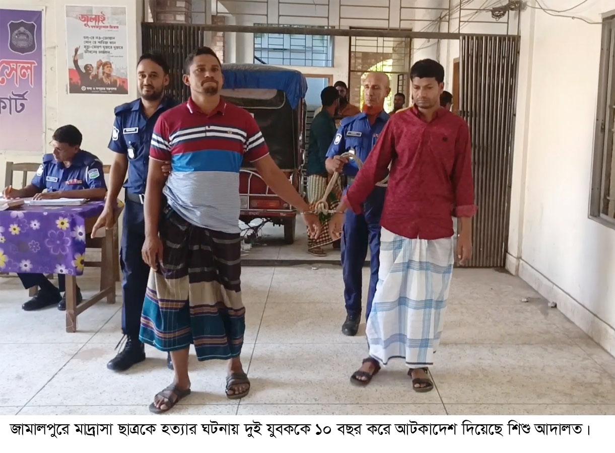 শিশু আদালত- ১ এর পাবলিক প্রসিকিউটর (পিপি) অ্যাডভোকেট ফজলুল হক বলেন, দেওয়ানগঞ্জ উপজেলার বানিয়ানীরচর পশ্চিমপাড়া এলাকার স্থানীয় আফতাবীয়া হাফেজিয়া মাদ্রাসার শেষ বর্ষের আবাসিক শিক্ষার্থী ছিলো উপজেলার চিকাজানী এলাকার আহম্মদ আলীর ছেলে আতিকুর রহমান আতিক। পুর্বের কথা কাটাকাটির জেরে গত ২০০৬ সালের ২৬ আগষ্ট সকালে দেওয়ানগঞ্জ উপজেলার বাহাদুরাবাদ সর্দারপাড়া গ্রামের সৈয়দ আলীর ছেলে মাদ্রাসা শিক্ষার্থী সাদ্দাম মিয়া (১৬) অপর মাদ্রাসা শিক্ষার্থী ইসলামপুর উপজেলার হরিণধরা গ্রামের নাছির আলীর ছেলে রিপনের (১৬) সহায়তায় একই মাদ্রাসায় ঘুমন্ত অবস্থায় আতিকুর রহমান আতিকের পেটে ছুড়িকাঘাত করে পালিয়ে যায় তারা। পরে গুরুত্বর আহত অবস্থায় আতিকুর রহমান আতিককে উদ্ধার করে দেওয়ানগঞ্জ উপজেলা স্বাস্থ্য কমপ্লেক্সে নিয়ে যায়। শারীরিক অবস্থা গুরুত্বর হওয়ায় উন্নত চিকিৎসার জন্য ময়মনসিংহ মেডিকেল কলেজ হাসপাতালে রেফার্ড করা হলে হাসপাতালে নেয়ার পথে মৃত্যু হয় তার। পরে ওই দিনই নিহতের বড় ভাই বাবু মিয়া (২২) ঘটনার সাথে জড়িত সাদ্দাম মিয়া ও রিপনকে আসামী করে দেওয়ানগঞ্জ থানায় হত্যা মামলা দায়ের করেন। গত ২০০৬ সালের ১৪ অক্টোবর আদালতে মামলাটির অভিযোগপত্র দাখিল করে পুলিশ। মামলায় ১৬ জন সাক্ষীর মধ্যে ১৩ জনের সাক্ষ্য গ্রহণ শেষে আসামীদের উপস্থিতিতেই বুধবার রায় ঘোষণা করে আদালত। ঘটনার সময় আসামীরা শিশু থাকায় শিশু আদালতে তাদের বিচার হয়েছে, তবে বর্তমানে তাদের বয়স ৩৫। রায়ে উভয় আসামীকে ১০ বছর করে আটকাদেশ দেয়া হয়। মামলায় রাষ্ট্রপক্ষে ছিলেন অ্যাডভোকেট ফজলুল হক এবং আসামীপক্ষে মামলা পরিচালনা করেন অ্যাডভোকেট মো: আনোয়ার হোসাইন।