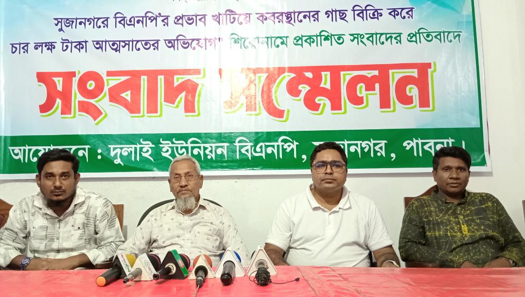 সংবাদ সম্মেলনে বক্তব্য রাখেন, সুজানগর উপজেলা বিএনপির সাবেক সহ-সভাপতি ও দুলাই ইউনিয়ন বিএনপির সাবেক সভাপতি হাবিবুর রহমান মাস্টার ও উপজেলা যুবদলের যুগ্ম আহবায়ক এস এম রাসেল। বক্তারা বলেন, কিছু পত্রিকা ও অনলাইন নিউজ পোর্টালে বিএনপির প্রভাব খাটিয়ে কবরস্থানে গাছ বিক্রির চার লাখ টাকা আত্মসাতের অভিযোগে সংবাদ প্রকাশিত হয়েছে। সংবাদ টি আমাদের দৃষ্টি গোচর হয়েছে।