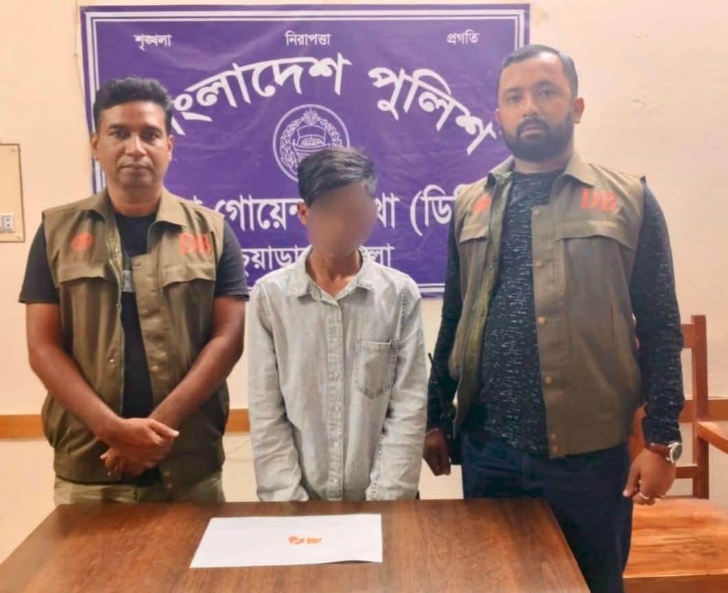 মশিউর রহমান ঃ চুয়াডাঙ্গা জেলার সুযোগ্য পুলিশ সুপার জনাব খন্দকার গোলাম মওলা, বিপিএম-সেবা মহোদয়ের সার্বিক দিকনির্দেশনায় জেলা পুলিশের সকল ইউনিটে একযোগে মাদক ও চোরাচালান বিরোধী অভিযান পরিচালিত হচ্ছে। তারই ধারাবাহিকতায় জেলা গোয়েন্দা শাখা (ডিবি) কর্তৃক মাদক বিরোধী বিশেষ অভিযানে সৌমিত্র সাহা সঙ্গীয় অফিসার এএসআই(নিঃ) মোঃ আবু আল ইমরান সঙ্গীয় ফোর্সসহ আজ ০৮ নভেম্বর ২০২৫ তারিখ বিকাল ১৬:০৫ ঘটিকায় দর্শনা থানাধীন বেগমপুর ফুলতলা তিন রাস্তার সামনে পাঁকা রাস্তার উপর হতে আসামী ১। মোঃ মেহেদী হাসান বিপ্লব(১৯), পিতা-নূর আলম,সাং-উথলী, থানা-জীবননগর, জেলা-চুয়াডাঙ্গা’কে গ্রেফতার পূর্বক আসামীর হেফাজত হতে ৪০ (চল্লিশ) অবৈধ মাদকদ্রব্য ইয়াবা ট্যাবলেট উদ্ধার করা হয়।