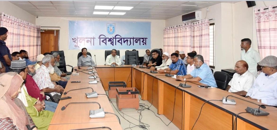 খুলনা বিশ্ববিদ্যালয়ের উপাচার্য প্রফেসর ড. মোঃ রেজাউল করিম এর সঙ্গে রেজিস্ট্রার কার্যালয়ের নিরাপত্তা শাখার কর্মকর্তা-কর্মচারীদের মতবিনিময় সভা আজ ০৯ নভেম্বর (রবিবার) দুপুরে প্রশাসনিক ভবনের সম্মেলন কক্ষে অনুষ্ঠিত হয়েছে।