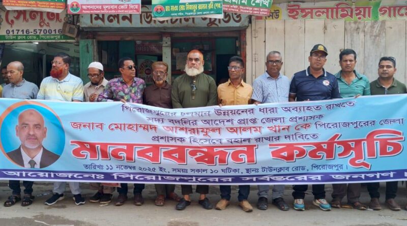 Read moreমোঃ মনিরুল ইসলাম চৌধুরী, স্টাফ রিপোর্টারঃ পিরোজপুরের জেলা প্রশাসক মোহাম্মদ আশরাফুল আলম খানের বদলি আদেশ বাতিলের দাবিতে মানববন্ধন অনুষ্ঠিত হয়েছে।