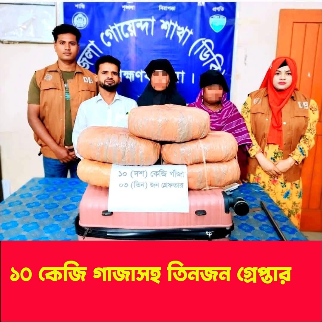 জেলা গোয়েন্দা শাখা (ডিবি) পুলিশ কর্তৃক ১০(দশ) কেজি গাঁজা উদ্ধার; ০৩ মাদক কারবারী গ্রেফতার: