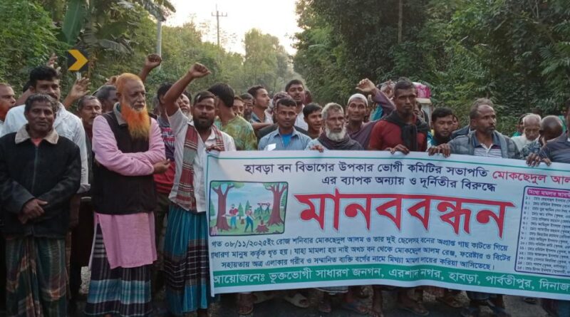 Read moreরুকুনুজ্জামান পার্বতীপুর প্রতিনিধি: দিনাজপুর পার্বতীপুরে হাবড়া বনবিভাগের উপকারভোগি কমিটির সভাপতি মোকছেদুল আলম এর ব্যাপক অন্যায় ও দূর্নীতির বিরুদ্ধে মানববন্ধন করেছে