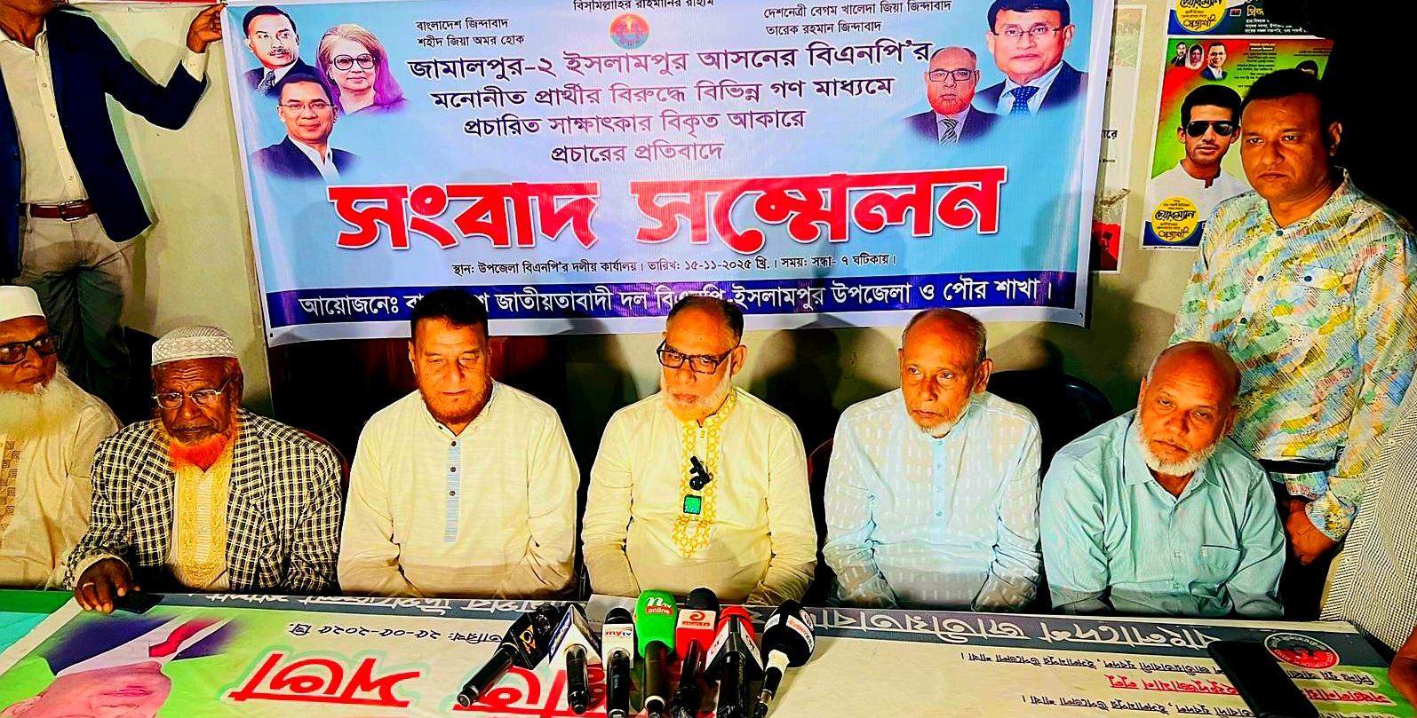 ইসলামপুরে বিএনপির মনোনীত প্রার্থীর ‘বিকৃত সাক্ষাৎকার প্রচারের প্রতিবাদে সংবাদ সম্মেলন