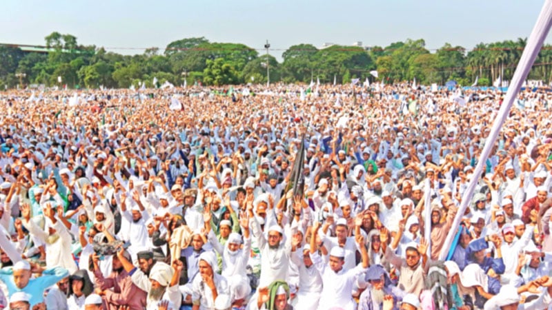 একই মঞ্চে বিএনপির স্থায়ী কমিটির সদস্য সালাহউদ্দিন আহমেদ বলেছেন, ‘যদি রাষ্ট্রক্ষমতা আমাদের হাতে আসে, সকল দাবি আলাপ-আলোচনার মাধ্যমে সংসদে আইনগতভাবে বাস্তবায়ন করব। যারা রাসুল (সা.)-এর পক্ষে নয়, তারা মুসলিম হতে পারে না।’