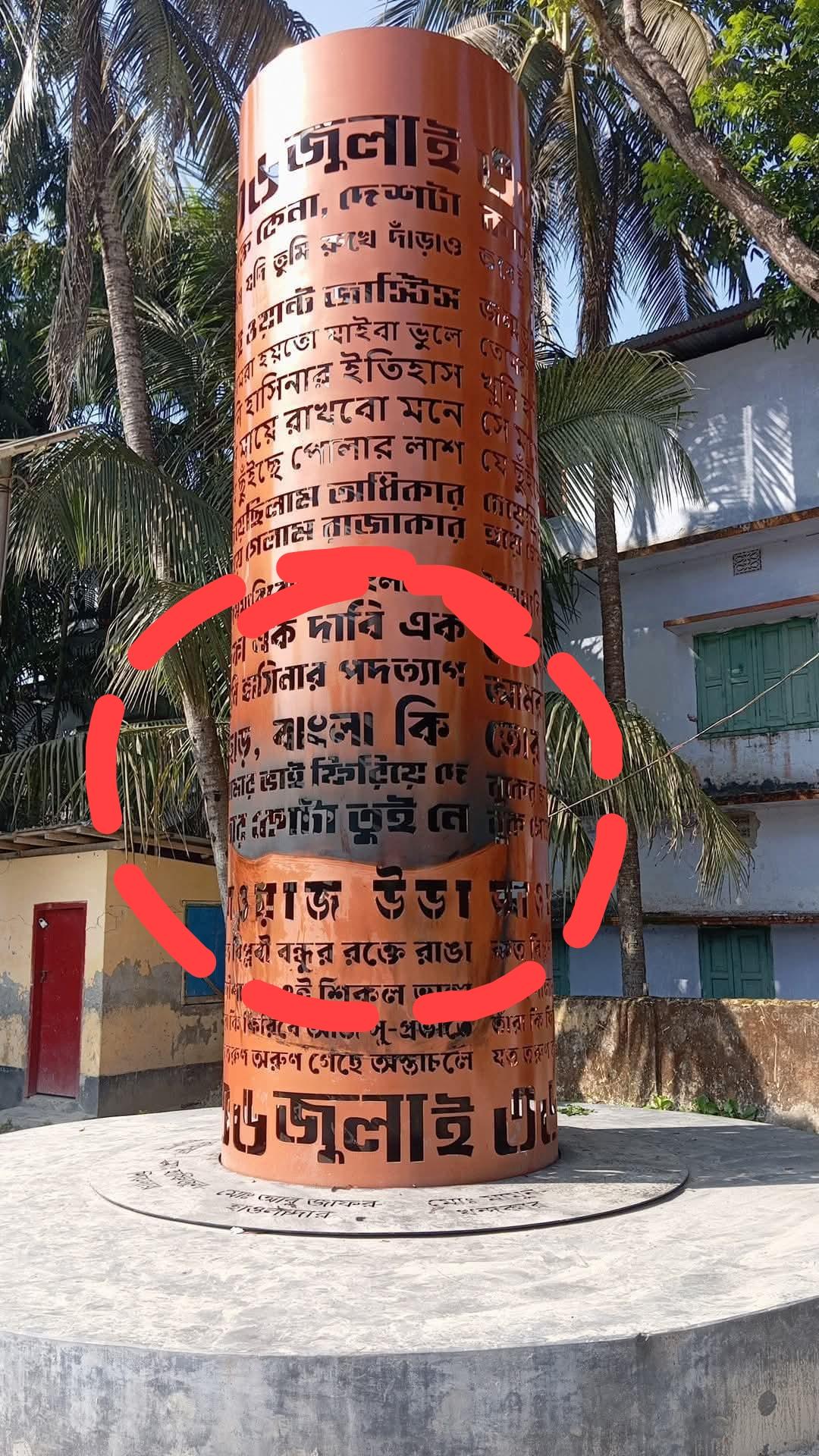 পিরোজপুরে জুলাই স্মৃতিস্তম্ভে অগ্নিসংযোগ