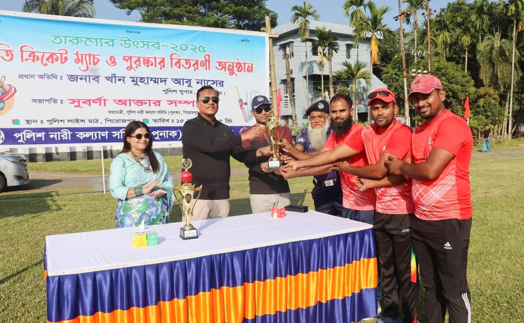 মোঃ মনিরুল ইসলাম চৌধুরী, স্টাফ রিপোর্টারঃ পিরোজপুরে “তারুণ্যের উৎসব-২০২৫” উদযাপন উপলক্ষে প্রীতি ক্রিকেট ম্যাচের শুভ উদ্বোধন ও পুরস্কার বিতরণ অনুষ্ঠিত হয়েছে। শনিবার (১৫ নভেম্বর) সকালে পিরোজপুর নারী কল্যাণ সমিতি (পুনাক)-এর আয়োজনে এবং জেলা পুলিশ পিরোজপুরের সহযোগিতায় পুলিশ লাইন্স মাঠে এই প্রীতি ম্যাচ অনুষ্ঠিত হয়। ম্যাচে অংশ করেন আলফা দল ও পুনাক দল।