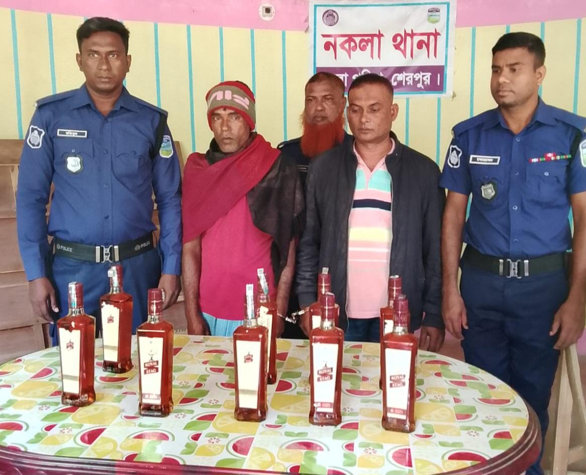 নকলা থানার ভারপ্রাপ্ত কর্মকর্তা (ওসি) মুহাম্মদ ফিরোজ হোসেন জানান গোপন সংবাদের ভিত্তিতে শনিবার রাতে ঢাকা-নালিতাবাড়ী আঞ্চলিক মহাসড়কের ধনাকুশা পুরাতন বাজার এলাকায় নালিতাবাড়ী থেকে আসা একটি মোটরসাইকেলের গতিরোধ করা হয়। পরে মোটরসাইকেলের চালক ও আরোহীর হেফাজতে থাকা ৯ বোতাল ভারতীয় মদসহ মোটরসাইকেলটি জব্দ এবং মোটর সাইকেলের চালক ও আরোহীকে আটক করা হয়। রবিবার (১৬ নভেম্বর) মোটর সাইকেলের চালক ও আরোহীর বিরুদ্ধে থানায় মামলা দিয়ে আদালতের মাধ্যমে তাদেরকে জেল হজতে পাঠানো হয়েছে।