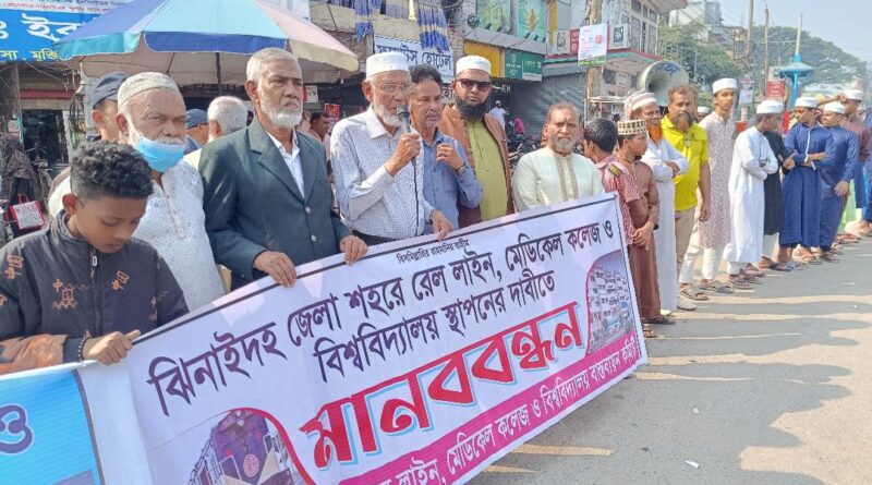 Read moreসাইফুল ইসলাম ঝিনাইদহ সংবাদদাতা – ঝিনাইদহ জেলা শহরে রেল লাইন, মেডিকেল কলেজ ও কৃষি বিশ্ববিদ্যালয় স্থাপনের দাবীতে মানববন্ধন কর্মসূচী পালিত