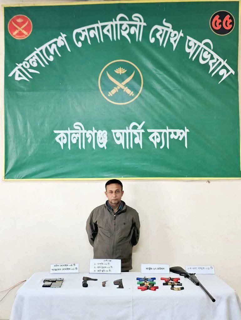 সুন্দরবনসংলগ্ন শ্যামনগরে সেনাবাহিনীর অভিযানে অস্ত্রসহ এক ব্যক্তির আটক