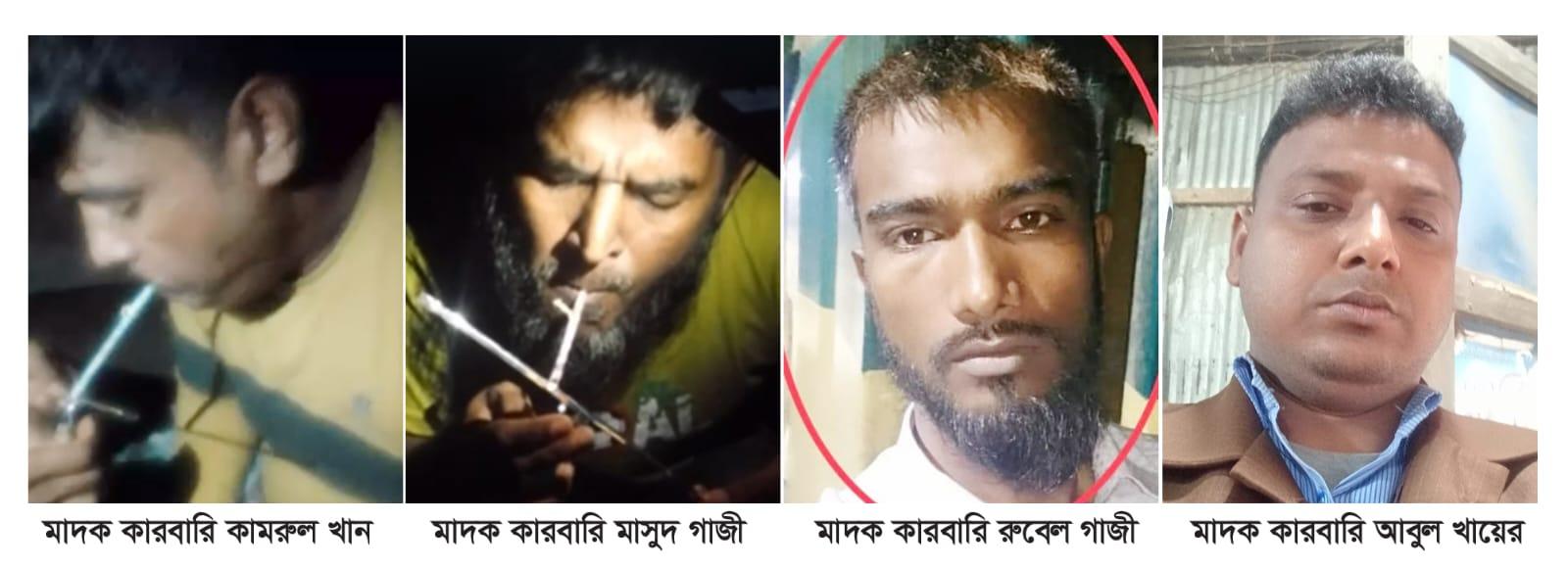 স্থানীয় সূত্র জানায়, একটি সংঘবদ্ধ চক্র দীর্ঘদিন ধরে এসব কারবার পরিচালনা করছে। তাদের মধ্যে অন্যতম পশ্চিম হোসেনপুর গ্রামের হাসিম গাজীর ছেলে রুবেল গাজী ওরফে গাজী কালু, যাকে এলাকার অন্যতম খুচরা মাদক বিক্রেতা হিসেবে চিহ্নিত করা হয়। এ চক্রে আরও রয়েছে,দক্ষিণ রালদিয়া গ্রামের আনোয়ার খানের ছেলে কামরুল খান, যার অনুপস্থিতিতে তার স্ত্রী নাকি কারবারটি চালায়।,পশ্চিম হোসেনপুর গ্রামের আলফু গাজীর ছেলে মাসুদ গাজী, যিনি প্রকাশ্যে মাদক সেবন ও বিক্রি করেন।