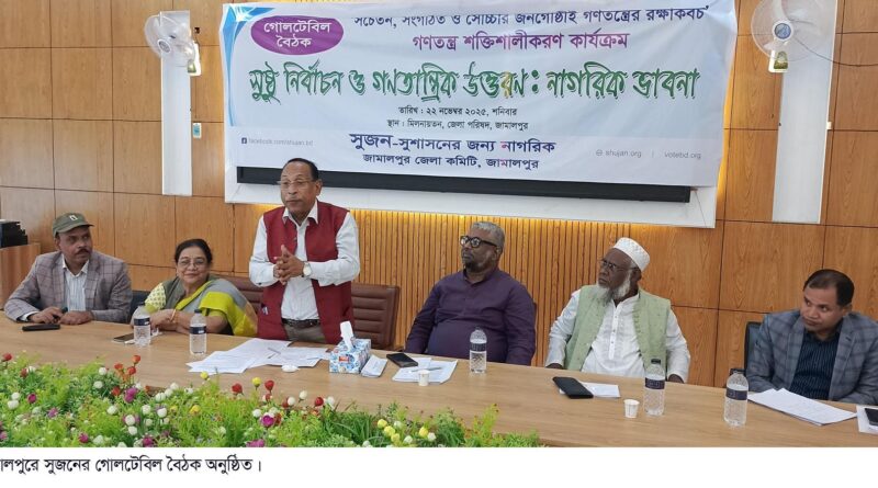 Read moreলিয়াকত হোসাইন লায়ন, জামালপুর প্রতিনিধি : জামালপুরে ‘সুষ্ঠু নির্বাচন ও গণতান্ত্রিক উত্তরণ: নাগরিক ভাবনা’ শীর্ষক গোলটেবিল বৈঠক অনুষ্ঠিত হয়েছে। শনিবার