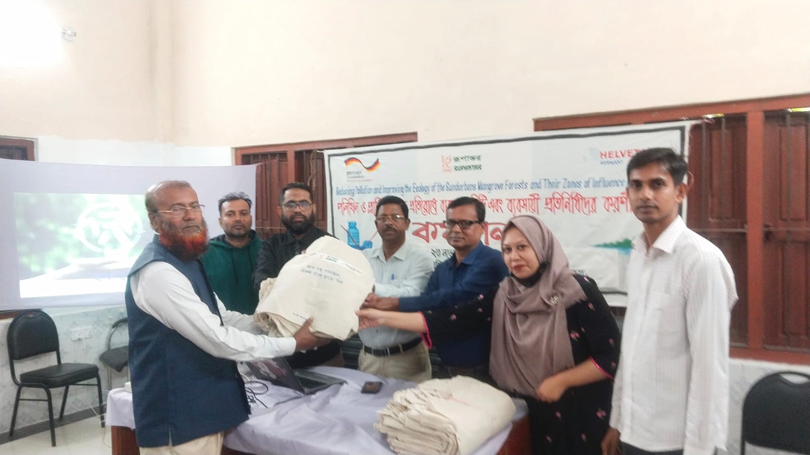 সেখ রাসল, ব্যুরো চিফ, খুলনা: বটিয়াঘাটা ইউনিয়ন পরিষদ হলরুমে রুপান্তরের আয়োজনে, পলিথিন ওপ্লাস্টিক প্রতিরোধে বিভিন্ন মুদি ব্যবসায়ীদের নিয়ে কর্মশালা অনুষ্ঠিত হয় গত বৃহস্পতিবার সকাল ১১ টার সময়। নজরুল ইসলামের সভাপতিত্বে, ও উদয় সংকরের সঞ্চালনায় উক্ত অনুষ্ঠানে প্রধান অতিথি হিসেবে উপস্থিত ছিলেন যুব উন্নয়ন কর্মকর্তা আবু বকর মোল্লা, বিশেষ অতিথি হিসাবে উপস্থিত ছিলেন অন্যদা শঙ্কর, প্রধান শিক্ষক হোগলবুনিয়া হাটবাটি মাধ্যমিক বিদ্যাপীঠ, রূপান্তরের প্রজেক্ট অফিসার শাকি রিজওয়ানা, দৈনিক জন্মভূমি ও দৈনিক সংগ্রামের বটিয়াঘাটা প্রতিনিধি তরিকুল ইসলাম, আরো উপস্থিত ছিলেন, সুন্দরবন ইয়ুথ গ্রুপের আলাউদ্দিন, তাসনিম, রাজিয়া, অনন্যা, ছন্দা, শাহাবুদ্দিন, রিমন, সোহাগ, সহ আরো অনেকে। অনুষ্ঠান শেষে ৩৩ জন মুদি ও সবজি ব্যবসায়ীদের মাঝে ৫০ পিস করে পচনশীল দ্রব্য দিয়ে তৈরি বাজারের ব্যাগ বিনামূল্যে বিতরণ করা হয়। প্রধান অতিথি তার বক্তৃতায় বলেন আমরা সকলের প্রচেষ্টার মাধ্যমে সামাজিক ও পারিবারিক ভাবে পলিথিন ও প্লাস্টিক কে বয়কট করলে পরিবেশকে পলিথিন ও প্লাস্টিক মুক্ত করতে পারব। আর আমরা এখন থেকে পদক্ষেপ না নিলে পরিবেশের ভারসাম্য ঝুঁকিতে থাকবে।