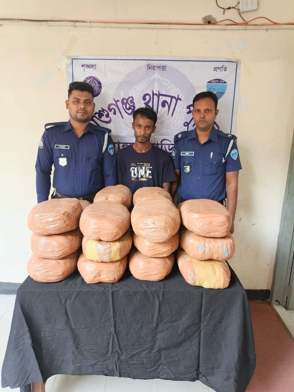 আশুগঞ্জ থানা পুলিশ কর্তৃক ৪৪ (চুয়াল্লিশ) কেজি গাঁজা উদ্ধার; ০১ মাদক কারবারী গ্রেফতার: