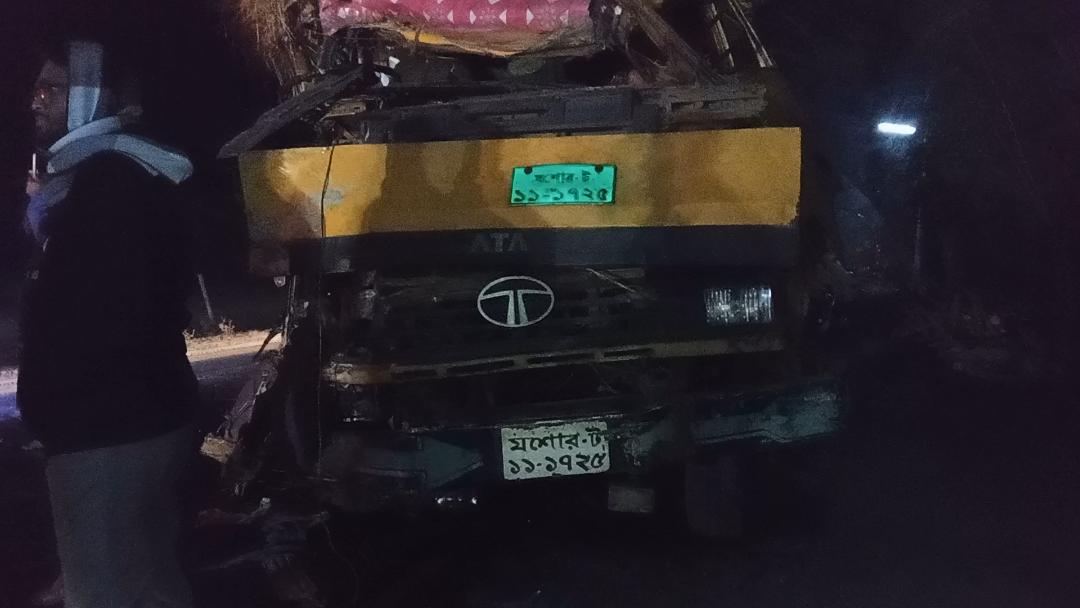 ঝিনাইদহ শহরে দুই ট্রাকের মুখোমুখি সংঘর্ষে ১,জন নিহত।