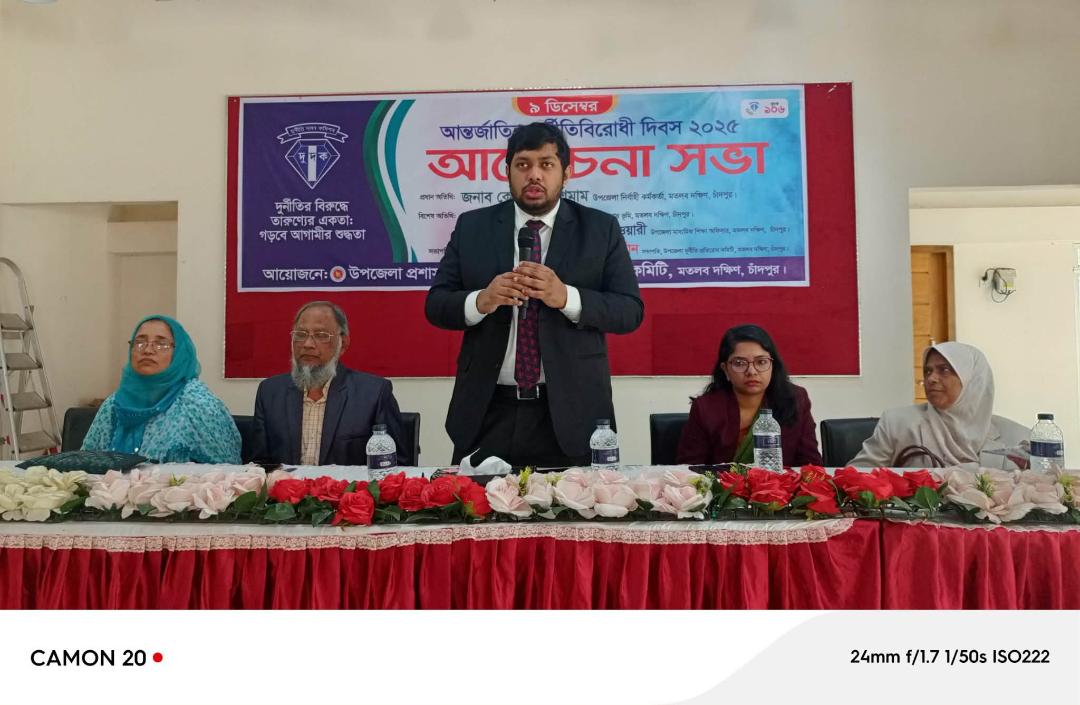 ক্যাপশনঃ মতলব দক্ষিণে আন্তজার্তিক দুর্নীতিবিরোধী দিবসে প্রধান অতিথির বক্তব্য রাখছেন ইউএনও কে.এম ইশমাম।