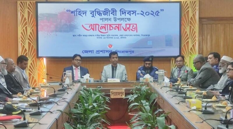 Read moreমোঃ মনিরুল ইসলাম চৌধুরী, স্টাফ রিপোর্টার: শহীদ বুদ্ধিজীবী দিবস ২০২৫ উপলক্ষে পিরোজপুর জেলা প্রশাসনের উদ্যোগে এক আলোচনা সভা অনুষ্ঠিত হয়েছে।