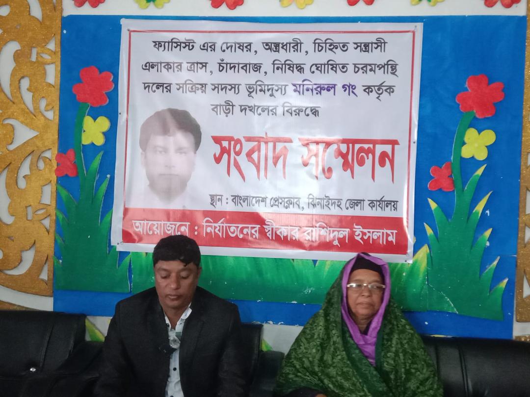 সংবাদ সম্মেলনে রাশিদুল জানান,অস্ত্রধারী মনিরুলের বিরুদ্ধে স্থানীয় ভাবে শালিক বৈঠক করা সহ ঝিনাইদহ থানায় গত,০৩/০৮/২০২৪,১৭/০৮/২০২৪,০৯/১২/২০২৪,২৮/১২/২০২৪,এবং ১৮/০৯/২০২৫ সহ ১০টি এবং সেনাবাহিনী ক্যাম্পে ৪ বার লিখিত অভিযোগ দায়ের করা হয়। প্রত্যেকবারই তার বিরুদ্ধে অভিযোগ প্রমানিত হলেও কালোশক্তির ক্ষমতাবলে তিনি ধরা ছোয়ার বাইরে থেকে গেছেন। এ বিষয়ে মনিরুল মেম্বার বলেন আমি সব মামলায় জামিনে আছি। কোন সম্পত্তি দখল করিনি কিছু জানতে চাইলে বিকাল ৫টার পরে দেখা করতে পারেন। মনিরুল এর প্রতিবেশি নাম প্রকাশ না করার শর্তে বলেন,তারা কলু সম্প্রদায়ের লোক এ কারনে দারুন বেপরোয়া আইন আদালত মানেতে চায় না। জোর জবরদখল লুটপাট করা তার অভ্যাস। তারা স্থানীয় হওয়ায় কেউ তার বিরুদ্ধে মুখ খুলতে সাহস পায় না। অপর একজন প্রতিবেশী জানান,রাশেদকে নির্মম ভাবে বিতাড়িত করে সব লুটপাট করে নিয়েছে। আমাকেও দোকান থেকে তাড়িয়ে দিয়ে পথে বসিয়েছে। ইউনিয়ন পরিষদ থেকে একাধীকবার দখল বুঝিয়ে দিলেও রাজনৈতিক ছত্রছায়ায় বারবার পার পেয়ে যাচ্ছে,সে মূলত আওয়ামীলীগের রশিদ চেয়ারম্যানের অস্ত্রধারী ক্যাডার। এ বিষয়ে ঝিনাইদহ থানা পুলিশ জানায় মামলাটি অনেক পুরনো, আমরা আদালতে চার্জশীট দিয়েছি । স্থানীয়রা জানান অবিলম্বে মনিরুলকে তার বাহিনী সহ গ্রেফতার করা না হলে আসন্ন জাতীয় সংসদ নির্বাচনে তার কাছে থাকা অবৈধ অস্ত্র ব্যবহার করে ত্রাসের রাজত্ব কায়েম করতে পারে।