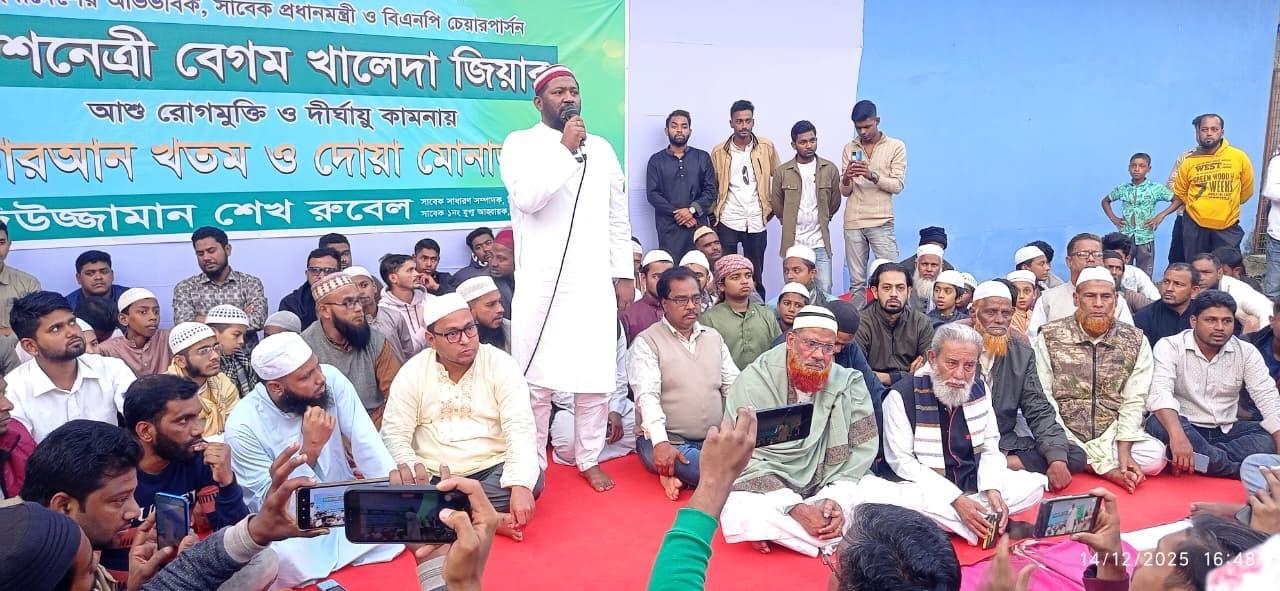 বক্তারা বলেন, দেশনেত্রী বেগম খালেদা জিয়া বর্তমানে গুরুতর অসুস্থ। তাঁর দ্রুত আরোগ্য কামনায় আজকের এই কুরআন খতম ও দোয়া মাহফিলের আয়োজন করা হয়েছে। তারা আরও বলেন, বেগম খালেদা জিয়া গণতন্ত্রের প্রতীক। আল্লাহর অশেষ রহমতে তিনি দ্রুত সুস্থ হয়ে আবারও জাতির মাঝে ফিরে আসবেন—এটাই দেশবাসীর প্রত্যাশা। দোয়া মাহফিলে বিএনপি ও এর অঙ্গ ও সহযোগী সংগঠনের বিপুলসংখ্যক নেতাকর্মী উপস্থিত ছিলেন।